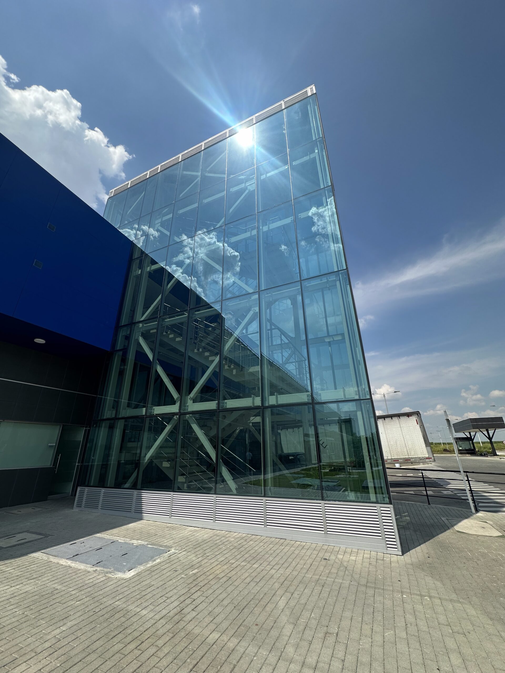 Proyecto sostenible que integra innovación, confort y seguridad en una propuesta arquitectónica de alto impacto. Fachadas desarrolladas con sistemas de aluminio pesado y piel de vidrio insulado de control climático y acústico en diferentes tonos, puertas automatizadas para control de ingreso y divisiones y barandas interiores en estructuras de acero y vidrio de seguridad que aportan privacidad e iluminación.