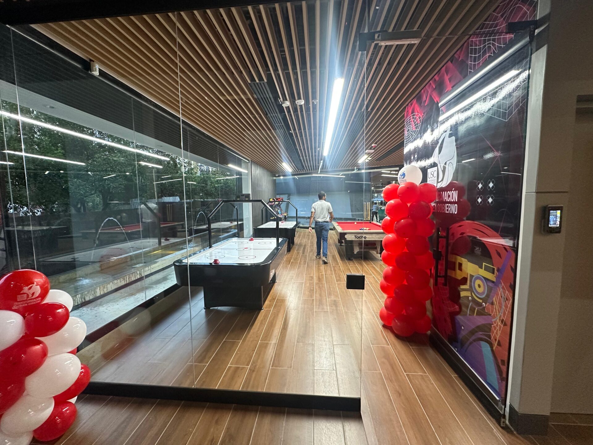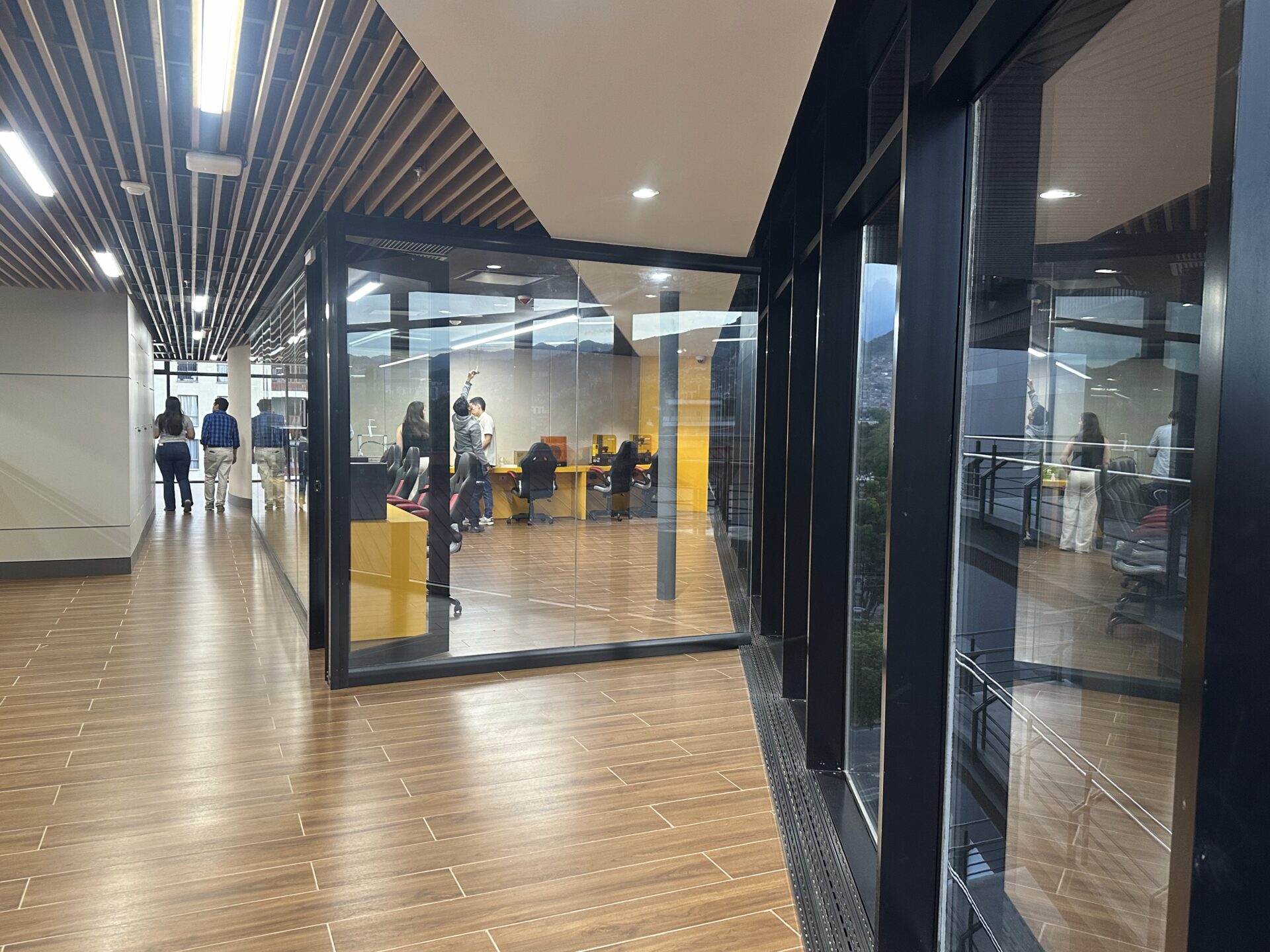 Piso translúcido antideslizante multilaminado, que aporta resistencia y luminosidad.